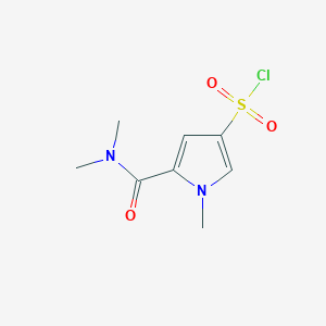 The compound this compound is systematically named according to International Union of Pure and Applied Chemistry nomenclature as 5-[(dimethylamino)carbonyl]-1-methyl-1H-pyrrole-3-sulfonyl chloride. This nomenclature reflects the precise positioning of functional groups on the pyrrole ring system, with the dimethylcarbamoyl substituent located at position 5 and the sulfonyl chloride group at position 3. The methyl group attached to the nitrogen atom at position 1 completes the substitution pattern of this heterocyclic compound.