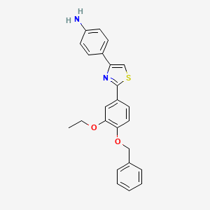 4-{2-[4-(Benzyloxy)-3-ethoxyphenyl]-1,3-thiazol-4-yl}aniline is an organic compound that features a complex structure with a thiazole ring, a benzyloxy group, and an aniline moiety