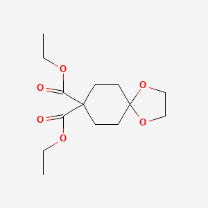 Diethyl 1,4-dioxaspiro[4.5]decane-8,8-dicarboxylate features a spiro structure that contributes to its chemical stability and reactivity. Its molecular weight is approximately 286.33 g/mol, and it possesses two carboxylate groups that may participate in various chemical reactions.