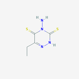 4-Amino-6-ethyl-1,2,4-triazine-3,5(2H,4H)-dithione is a heterocyclic compound that belongs to the triazine family. This compound is characterized by its unique structure, which includes a triazine ring with amino and ethyl substituents, as well as dithione groups. Triazines are known for their diverse applications in various fields, including agriculture, pharmaceuticals, and materials science.