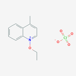 1-Ethoxy-4-methylquinolin-1-ium perchlorate is a chemical compound with the molecular formula C12H14ClNO4 It is a quaternary ammonium salt derived from quinoline, a heterocyclic aromatic organic compound
