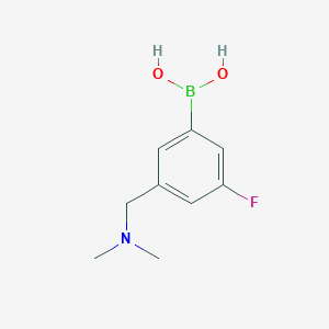 3-((Dimethylamino)methyl)-5-fluorophenylboronic acid is an organoboron compound that has garnered attention in various fields of research, particularly in medicinal chemistry and biological applications. This compound is characterized by its unique structural features, which include a dimethylamino group and a fluorinated phenyl ring, making it a candidate for diverse biological activities.