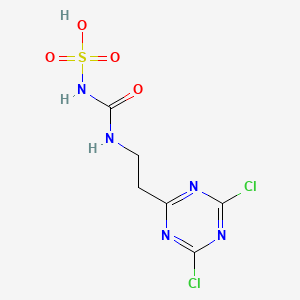 {[2-(4,6-Dichloro-1,3,5-triazin-2-yl)ethyl]carbamoyl}sulfamic acid is a chemical compound known for its unique structure and properties It is characterized by the presence of a triazine ring substituted with chloro groups and an ethylcarbamoyl sulfamic acid moiety