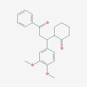 Cyclohexanone, 2-[1-(3,4-dimethoxyphenyl)-3-oxo-3-phenylpropyl]- is an organic compound with a complex structure that includes a cyclohexanone ring, a 3,4-dimethoxyphenyl group, and a phenylpropyl group