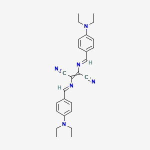 2,3-Bis[[4-(diethylamino)phenyl]methylideneamino]but-2-enedinitrile is a complex organic compound known for its unique structural properties and applications in various scientific fields. This compound is characterized by the presence of diethylamino groups attached to phenyl rings, which are further connected to a but-2-enedinitrile core through methylene bridges.