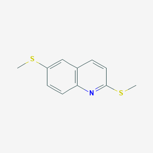 Electronic Effects: Investigating how the electron-donating nature of the methylsulfanyl groups affects the electron density distribution within the quinoline ring system. This has direct implications for its performance in electronic devices and its reactivity in catalytic processes.