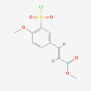 One common synthetic route involves the esterification of 3-[3-(chlorosulfonyl)-4-methoxyphenyl]prop-2-enoic acid with methanol. This process typically utilizes acid catalysts such as sulfuric acid and is conducted under reflux conditions to ensure complete conversion to the ester form.