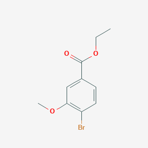 Ethyl 4-bromo-3-methoxybenzoate is a key intermediate in the synthesis of more complex molecules. While direct synthesis protocols for this specific ester are not extensively detailed in readily available literature, its preparation can be inferred from standard esterification procedures of the corresponding carboxylic acid, 4-bromo-3-methoxybenzoic acid. The synthesis of related compounds, such as ethyl 3-bromo-4-methoxyphenylacetate, involves the treatment of the parent carboxylic acid with ethanol (B145695) in the presence of a catalyst like thionyl chloride. Similarly, the synthesis of ethyl 4-bromo-3-(ethoxymethyl)benzoate has been achieved by reacting ethyl 4-bromo-3-(bromomethyl)benzoate with sodium ethoxide. chemicalbook.com