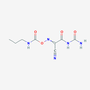 N-Carbamoyl-2-cyano-2-{[(propylcarbamoyl)oxy]imino}acetamide is a chemical compound with the molecular formula C8H11N5O4. It is known for its unique structure, which includes both cyano and carbamoyl functional groups.