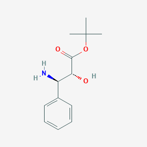 The mechanism of action of t-Butyl (2R,3R)-3-amino-2-hydroxy-3-phenylpropanoate involves its interaction with specific molecular targets, such as enzymes or receptors. The compound’s functional groups allow it to participate in hydrogen bonding, electrostatic interactions, and hydrophobic interactions, which are crucial for its biological activity. The exact pathways and targets depend on the specific application and context of its use .