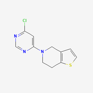 5-(6-Chloropyrimidin-4-yl)-4,5,6,7-tetrahydrothieno[3,2-c]pyridine plays a crucial role in various biochemical reactions. It interacts with several enzymes, proteins, and other biomolecules, influencing their activity and function. Notably, this compound has been shown to interact with serine/threonine-protein kinases, such as AKT1 and glycogen synthase kinase-3 beta. These interactions are essential for regulating cellular processes, including metabolism, proliferation, and cell survival. The nature of these interactions involves binding to the active sites of these enzymes, thereby modulating their activity.