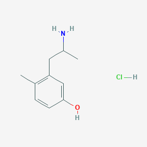 3-(2-Aminopropyl)-4-methylphenol;hydrochloride is an organic compound with the molecular formula C10H16ClNO It is a derivative of phenol and is characterized by the presence of an aminopropyl group and a methyl group attached to the benzene ring