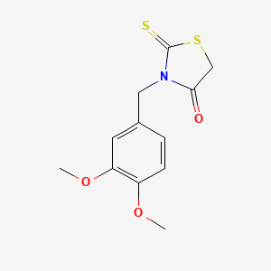 "Rhodanine, 3-veratryl-" is distinguished by the presence of a veratryl group (a 3,4-dimethoxybenzyl group) attached to the nitrogen atom at the 3-position of the rhodanine ring. This substitution significantly influences the compound's properties, including its hydrophobicity, which can affect its ability to permeate cell membranes. vulcanchem.com