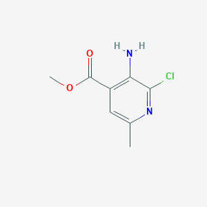 The mode of action of Methyl 3-amino-2-chloro-6-methylpyridine-4-carboxylate involves several crucial steps. The process starts with the substitution reaction of 3-Amino-2-chloro-4-methylpyridine with methanol to introduce the desired amino and methyl groups . Subsequently, a cyclization reaction occurs to form the pyrazolopyridine core structure .