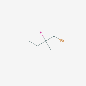 1-Bromo-2-fluoro-2-methylbutane plays a role in biochemical reactions primarily through its interactions with enzymes and proteins. It can act as a substrate or inhibitor in enzymatic reactions, depending on the specific enzyme involved. For instance, halogenated alkanes like this compound are known to interact with cytochrome P450 enzymes, which are involved in the metabolism of various xenobiotics. The nature of these interactions can include covalent binding to the enzyme’s active site, leading to inhibition of enzyme activity.