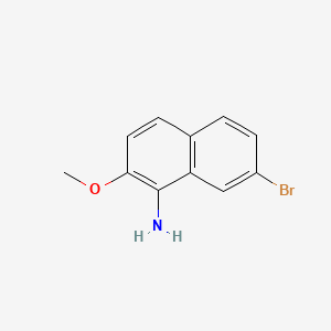 The mechanism of action of 7-Bromo-2-methoxynaphthalen-1-amine depends on its specific application. In biological systems, the compound may interact with molecular targets such as enzymes, receptors, or DNA. The presence of the bromine atom and methoxy group can influence its binding affinity and specificity towards these targets. The amine group may also play a role in forming hydrogen bonds or ionic interactions with biological macromolecules, thereby modulating their activity.
