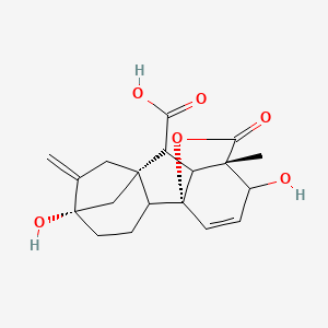 Gibberellin A3 is part of a larger family of gibberellins, which includes compounds like gibberellin A1, gibberellin A4, and gibberellin A7. These compounds share a similar pentacyclic diterpenoid structure but differ in their specific functional groups and biological activities. Gibberellin A3 is unique in its widespread use and effectiveness as a plant growth regulator, particularly in agricultural applications .