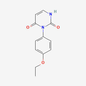 The synthesis of 3-(4-ethoxyphenyl)pyrimidine-2,4(1H,3H)-dione typically involves the reaction of 4-ethoxybenzaldehyde with thiourea and ethyl acetoacetate under basic conditions. The cyclization process results in the formation of the pyrimidine core, which can be further modified through oxidation, reduction, and substitution reactions to enhance its biological activity or tailor its properties for specific applications.