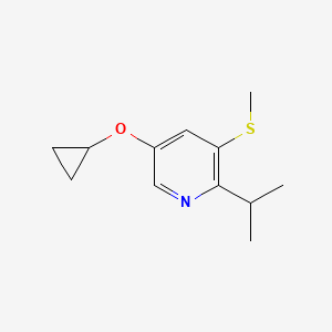 5-Cyclopropoxy-2-isopropyl-3-(methylthio)pyridine is a chemical compound with the molecular formula C12H17NOS. It is known for its unique structural features, including a cyclopropoxy group, an isopropyl group, and a methylthio group attached to a pyridine ring. This compound is primarily used in research settings and has various applications in organic synthesis and medicinal chemistry .