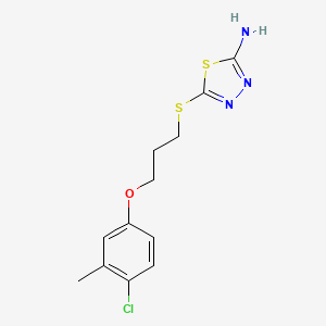 5-{[3-(4-Chloro-3-methylphenoxy)propyl]sulfanyl}-1,3,4-thiadiazol-2-amine is a synthetic organic compound that belongs to the class of thiadiazoles Thiadiazoles are heterocyclic compounds containing both sulfur and nitrogen atoms in a five-membered ring This particular compound is characterized by the presence of a chloro-methylphenoxy group, a propylsulfanyl chain, and an amine group attached to the thiadiazole ring