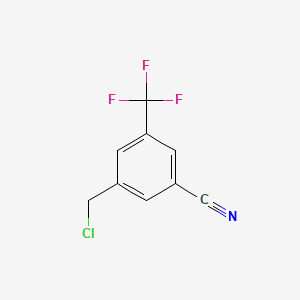The mechanism by which 3-(Chloromethyl)-5-(trifluoromethyl)benzonitrile exerts its effects depends on the specific application. In chemical reactions, the presence of the trifluoromethyl group can influence the reactivity and stability of the compound. The chloromethyl group can act as a reactive site for further functionalization. The nitrile group can participate in various addition reactions, making the compound versatile in synthetic chemistry .