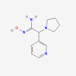 (Z)-N’-hydroxy-2-(pyridin-3-yl)-2-(pyrrolidin-1-yl)acetimidamide is a synthetic organic compound that has garnered interest in various fields of scientific research. This compound is characterized by its unique structure, which includes a pyridine ring, a pyrrolidine ring, and a hydroxyimino group. The presence of these functional groups imparts specific chemical properties and reactivity to the compound, making it a valuable subject of study in chemistry, biology, and medicine.
