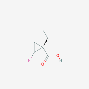 Trans-1-ethyl-2-fluorocyclopropanecarboxylic acid: is an organic compound with the molecular formula C6H9FO2. It is a derivative of cyclopropanecarboxylic acid, where the cyclopropane ring is substituted with an ethyl group and a fluorine atom.