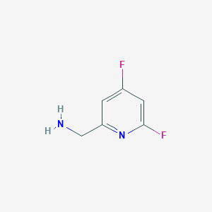 (4,6-Difluoropyridin-2-YL)methylamine is a fluorinated pyridine derivative featuring a methylamine group at the 2-position and fluorine atoms at the 4- and 6-positions of the aromatic ring. This compound belongs to the heterocyclic amine family, characterized by its electron-deficient pyridine core, which is modified by fluorine substituents to enhance its electronic and steric properties. Fluorine atoms are known to influence molecular polarity, lipophilicity, and metabolic stability, making this compound of interest in medicinal chemistry and materials science.