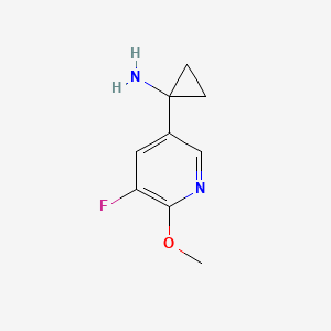 1-(5-Fluoro-6-methoxypyridin-3-YL)cyclopropanamine is a chemical compound with the molecular formula C9H11FN2O and a molecular weight of 182.19 g/mol . This compound is characterized by the presence of a cyclopropanamine group attached to a pyridine ring substituted with fluorine and methoxy groups. It is used in various scientific research applications due to its unique chemical properties.