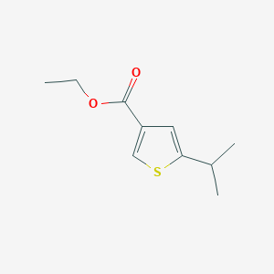 The synthesis of Ethyl 5-isopropylthiophene-3-carboxylate typically involves the reaction of 5-isopropylthiophene-3-carboxylic acid with ethanol in the presence of a dehydrating agent such as sulfuric acid. The reaction is carried out under reflux conditions to facilitate the esterification process .