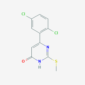 6-(2,5-Dichlorophenyl)-2-(methylthio)pyrimidin-4(3H)-one is a synthetic compound belonging to the pyrimidinone class. It has garnered attention due to its potential biological activities, particularly in the fields of medicinal chemistry and pharmacology. This article aims to summarize the biological activity of this compound, highlighting its mechanisms, applications, and relevant research findings.