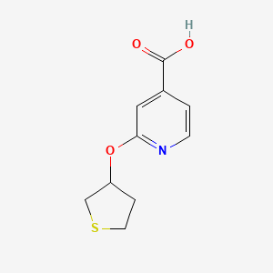 2-((Tetrahydrothiophen-3-yl)oxy)isonicotinic acid is an organic compound that features a tetrahydrothiophene ring attached to an isonicotinic acid moiety via an ether linkage