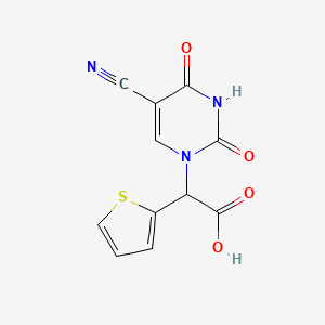 2-(5-cyano-2,4-dioxo-3,4-dihydropyrimidin-1(2H)-yl)-2-(thiophen-2-yl)acetic acid is a synthetic organic compound that features a pyrimidine ring fused with a thiophene ring