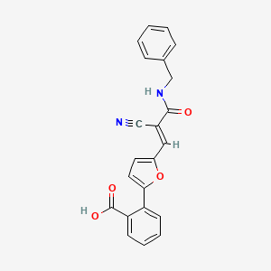 C1=CC=C(C=C1)CNC(=O)/C(=C/C2=CC=C(O2)C3=CC=CC=C3C(=O)O)/C#N |