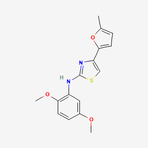 N-(2,5-dimethoxyphenyl)-4-(5-methylfuran-2-yl)-1,3-thiazol-2-amine is a synthetic organic compound that belongs to the class of thiazole derivatives. This compound is characterized by the presence of a thiazole ring, a furan ring, and a dimethoxyphenyl group. It has garnered interest in scientific research due to its potential pharmacological properties and applications in various fields.