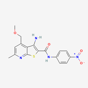 3-amino-4-(methoxymethyl)-6-methyl-N-(4-nitrophenyl)thieno[2,3-b]pyridine-2-carboxamide is a heterocyclic compound that belongs to the thieno[2,3-b]pyridine family