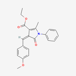ETHYL 3-[(Z)-1-(4-METHOXYPHENYL)METHYLIDENE]-5-METHYL-2-OXO-1-PHENYL-1,2-DIHYDRO-3H-PYRROLE-4-CARBOXYLATE is a complex organic compound with a unique structure that includes a pyrrole ring, a methoxyphenyl group, and an ethyl ester