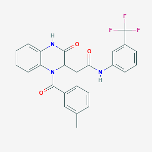 2-[1-(3-METHYLBENZOYL)-3-OXO-1,2,3,4-TETRAHYDROQUINOXALIN-2-YL]-N-[3-(TRIFLUOROMETHYL)PHENYL]ACETAMIDE is a complex organic compound that features a quinoxaline core, a trifluoromethyl group, and a benzoyl moiety
