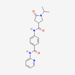 5-oxo-1-(propan-2-yl)-N-[4-(pyridin-2-ylcarbamoyl)phenyl]pyrrolidine-3-carboxamide is a complex organic compound with a unique structure that includes a pyrrolidine ring, a pyridine moiety, and a carboxamide group