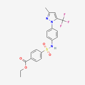 Ethyl 4-({4-[3-methyl-5-(trifluoromethyl)-1H-pyrazol-1-yl]phenyl}sulfamoyl)benzoate is a complex organic compound that features a trifluoromethyl group, a pyrazole ring, and a benzoate ester