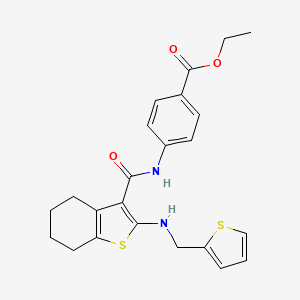ETHYL 4-(2-{[(THIOPHEN-2-YL)METHYL]AMINO}-4,5,6,7-TETRAHYDRO-1-BENZOTHIOPHENE-3-AMIDO)BENZOATE is a complex organic compound that belongs to the class of thiophene derivatives. Thiophene and its derivatives are known for their wide range of applications in medicinal chemistry, material science, and industrial chemistry . This compound, in particular, has garnered interest due to its potential therapeutic properties and its role in various chemical reactions.