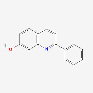 2-Phenylquinolin-7-ol is a heterocyclic compound featuring a quinoline core substituted with a phenyl group at position 2 and a hydroxyl group at position 5. Its molecular formula is C₁₆H₁₃NO₂ (SMILES: Cc1cc(ccc1O)c2ccnc3cc(O)ccc23), as confirmed by crystallographic and spectroscopic data . The compound is synthesized via multi-step reactions involving substituted acetophenones and quinoline precursors under alkaline conditions, followed by purification via crystallization . Its structural uniqueness lies in the electron-rich quinoline scaffold, which facilitates interactions with biological targets such as histone deacetylases (HDACs), making it a candidate for anticancer research .