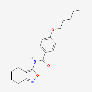 4-(Pentyloxy)-N-(4,5,6,7-tetrahydro-2,1-benzoxazol-3-yl)benzamide is a synthetic benzamide derivative featuring a pentyloxy (C₅H₁₁O) substituent on the benzamide moiety and a fused bicyclic 4,5,6,7-tetrahydro-2,1-benzoxazole core. This compound is of interest in medicinal chemistry due to its structural similarity to bioactive molecules targeting enzymes or receptors, such as kinases or G protein-coupled receptors (GPCRs).