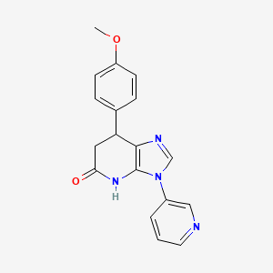 InChI=1S/C18H16N4O2/c1-24-14-6-4-12(5-7-14)15-9-16(23)21-18-17(15)20-11-22(18)13-3-2-8-19-10-13/h2-8,10-11,15H,9H2,1H3,(H,21,23) |