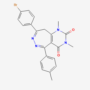 8-(4-BROMOPHENYL)-1,3-DIMETHYL-5-(4-METHYLPHENYL)-1H,2H,3H,4H,9H-PYRIMIDO[5,4-D][1,2]DIAZEPINE-2,4-DIONE is a complex organic compound that belongs to the class of pyrimido[5,4-d][1,2]diazepine derivatives This compound is characterized by its unique structure, which includes bromophenyl and methylphenyl groups attached to a pyrimido-diazepine core