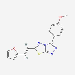 6-[(1E)-2-(FURAN-2-YL)ETHENYL]-3-(4-METHOXYPHENYL)-[1,2,4]TRIAZOLO[3,4-B][1,3,4]THIADIAZOLE is a heterocyclic compound that has garnered significant interest due to its diverse pharmacological activities. This compound is characterized by the presence of a triazolothiadiazole core, which is known for its potential therapeutic applications, including anticancer, antimicrobial, and anti-inflammatory properties .