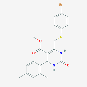 Methyl 6-{[(4-bromophenyl)sulfanyl]methyl}-4-(2,4-dimethylphenyl)-2-oxo-1,2,3,4-tetrahydropyrimidine-5-carboxylate is a complex organic compound with potential applications in various fields such as chemistry, biology, and medicine. This compound features a tetrahydropyrimidine core, which is a common scaffold in medicinal chemistry due to its biological activity.