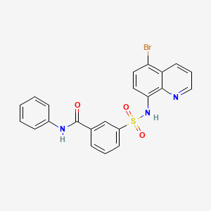 3-[(5-bromoquinolin-8-yl)sulfamoyl]-N-phenylbenzamide is a complex organic compound that features a quinoline ring substituted with a bromine atom at the 5-position and a sulfonamide group at the 8-position. This compound also includes a phenylbenzamide moiety. The unique structure of this compound makes it of interest in various fields of scientific research, including medicinal chemistry and materials science.