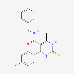 N-BENZYL-4-(4-FLUOROPHENYL)-6-METHYL-2-SULFANYLIDENE-1,2,3,4-TETRAHYDROPYRIMIDINE-5-CARBOXAMIDE is a complex organic compound with a unique structure that includes a benzyl group, a fluorophenyl group, and a sulfanylidene group