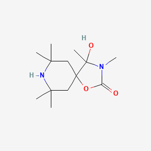 The mechanism of action of 4-Hydroxy-3,4,7,7,9,9-hexamethyl-1-oxa-3,8-diazaspiro[4.5]decan-2-one involves its interaction with specific molecular targets and pathways. The hydroxyl group and spiro structure play crucial roles in its reactivity and binding affinity. The compound can interact with enzymes and receptors, modulating their activity and leading to various biological effects.